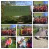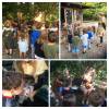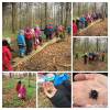 Stora och små barn på trollvandring i skogen.
